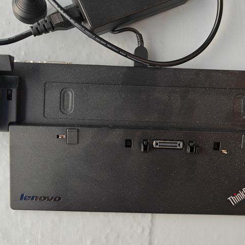Lenovo dock med nøgle og strømforsyning. Se modelnr. for kompatibilitet med laptop.