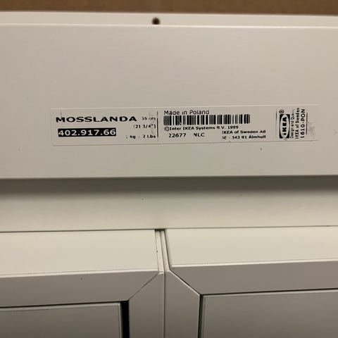 Mit barnebarn havde fingrene i skufferne og synes det var sjovt at trække den ud og ind. Desværre røg der en lille chip af hjørnet på en af skufferne. Den er limet på igen. Hylden er stadig ubrugt og i fin stand.
