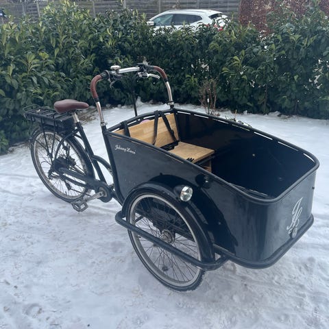 Elektrisk long john ladcykel. Fra Amager ladcykler og de elektriske dele af fra Green Rider i Vanløse.