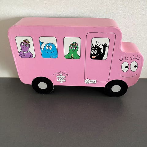 1 stk. i en trækasse Barbapapa som består af 4 træ puslespil a 12 brikker.