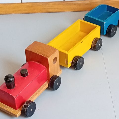 Smuk lokomotiv i træ trækvogn