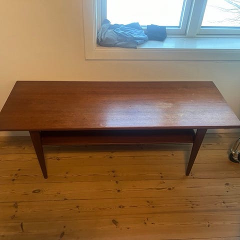Fremstår med alders- og brugsslitage. Ridser og mærker. Vandskjolder. Se billeder.