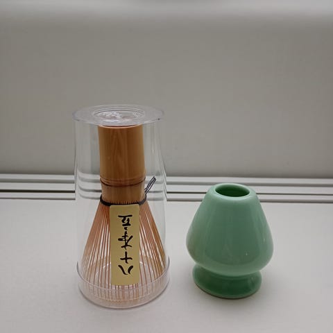 Hvid 4-i-1 matcha startsæt med bambuspisk, skål, piskholder og bambusske