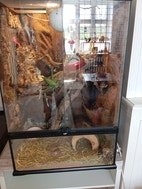 INCL stort terarrie, varme sten, varmeplade og krybdyrs monitor med automatisk regulering af fugt og varme.