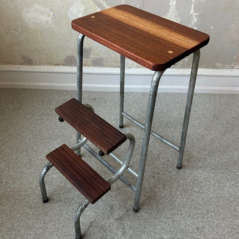 Taburet, trappestige -retro. Fuld fuktionsdygtig og hyggestol imens maden tilberedes af familien.