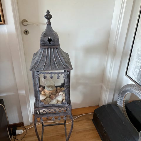 Super fin lanterne, giver et meget smukt lys med stainlys inden i. Lidt bulet hist og her, kan rettes ud, men ikke noget der har generet her.