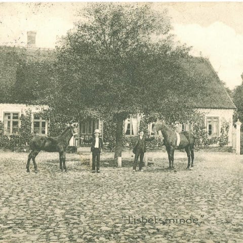 Postkort med Sæbygaard (Jylland), set fra haven. Poststemplet Sæby 21.7.1919.