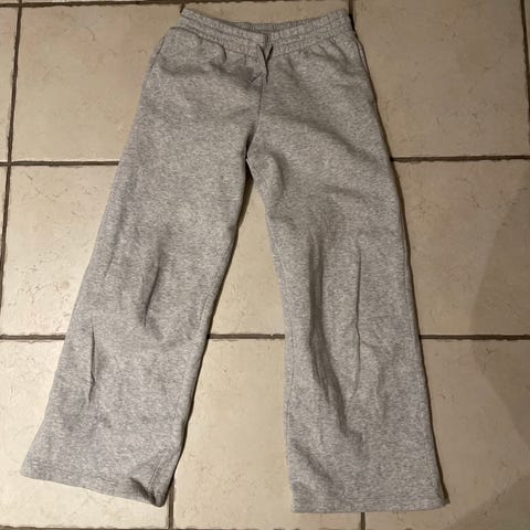 Sorte joggingbukser med skeletaftegninger foran, som kun er brugt et par gange. Str. 134/140. Til hygge eller Halloween. Fra ikke-ryger og dyrefrit hjem.