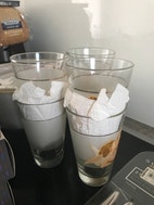 6 stk virkelig fine glas, med engle og guldkant. Sælges samlet.