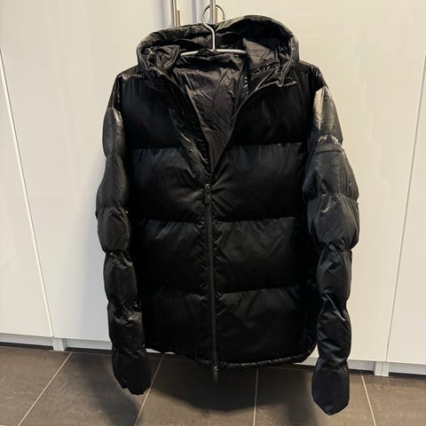 Dynejakke, str. L, Armani ea7, Sort, Næsten som ny, Fed jakke med lækkert stof. 80% andedun 20% fjer. God kvalitet vinterjakke.
