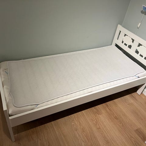 Mål på seng: bredde 77cm, længde 165cm, højde 48-68cm