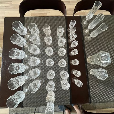 9 stk. antikke slebne krystalglas på sort fod
