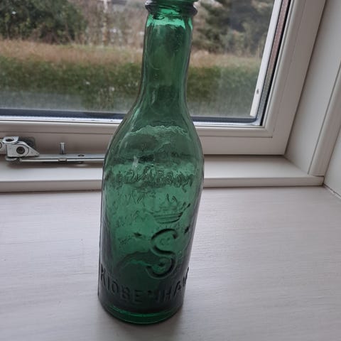 5 stk. antikke sodavandsflasker med patentprop, alm. brugt stand. Pakningerne er defekte, ellers fungerer propperne.