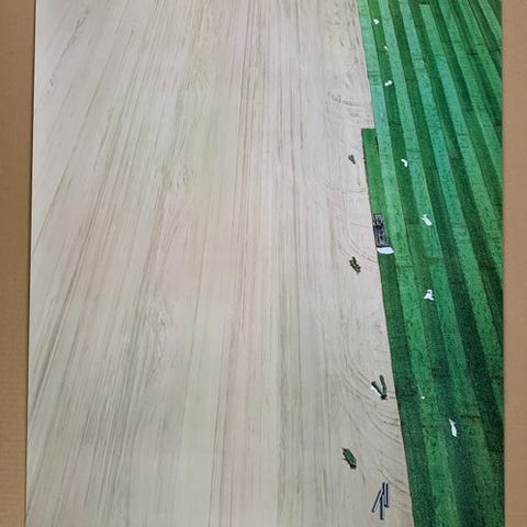 Seriegrafi, Maures Flores Gomez, motiv: Fodbold Honduras, b: 89 h: 65, En længere historie. Op til fodbold VM 2010 i Sydafrika blev der valgt kunstnere fra de deltagende lande til at lave billeder (seriegrafier) til salg. Billederne blev udstillet i bl.a. Danmark. Vi så udstillingen i Augustenborg på "Augustiana" sommeren 2010, og købte et billede af Maury. Men da galleriejer ikke kunne få nummereret billedet pga. problemer i Sydafrika fik jeg det til nedsat pris - efter udstillingen var forbi. Der er således FIFA stempel i nederste venstre hjørne, mens Maurys navn og årstal kan ses nederst i højre side af billedet. Men serigrafi nummer er der ikke. Se beskrivelse af projektet på kunsten.nu i artikel den 27. maj 2010 " Dansk kunst til verdensmesterskaberne". Maury Flores Gomez kommer selv fra Hondouras. Der er kvittering på købet fra Galleri Nørballe / Augustiana på 2.800 kr.