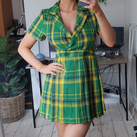 Festkjole, Collusion, str. S, Grøn, Næsten som ny, Grøn kjole i flot ternet stof