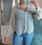 Skjorte, ., str. 38, Grøn, Næsten som ny, Sart grøn skjorte i transparent stof / let gennemsigtigt