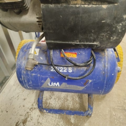 Selekta Kompressor HP 2.5 LT 50 i grå farve. Denne kompressor har en kapacitet på 50 liter og er udstyret med en motor på 2.5 HK. Den er velegnet til forskellige opgaver, der kræver trykluft. Kompressoren er mobil med hjul og et håndtag, hvilket gør den nem at flytte rundt.