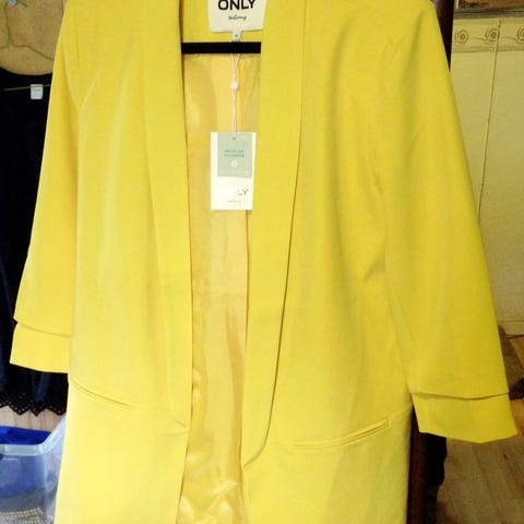 Lyseblå blazer - lukkes med 2 knapper- der er 2 lommer, foret er lyseblå.