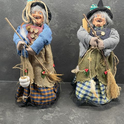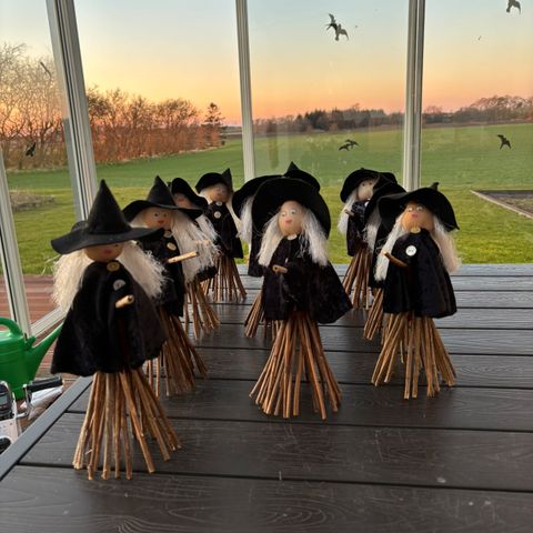 Jeg har disse hekse til salg. De er 18 cm høje. Der er 4 farver. Nu er det jo snart sankthans. Evt. til at pynte på det veldækkede bord eller en sjov værtindegave.