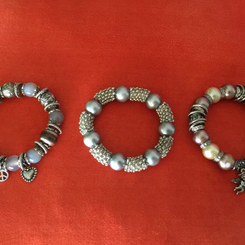 3 SMUKKE PERLEARMBÅND - BRUGT FÅ GANGE.