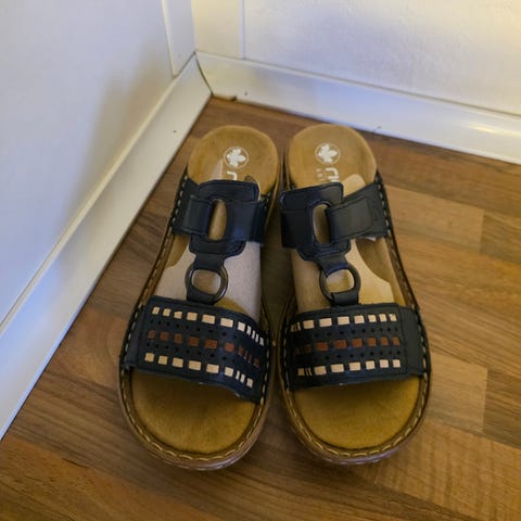 Rieker sandal i sort, med flotte detaljer og den blødeste skindkvalitet.
