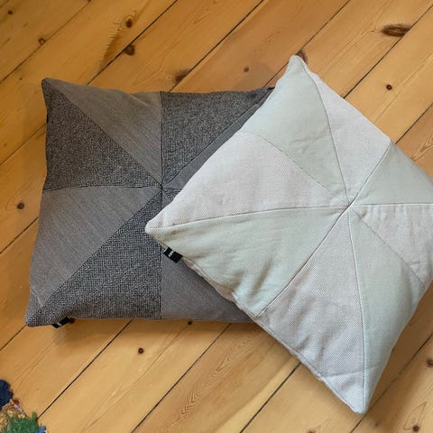 Fin gulvpude fra Hay, 100 % uldbetræk. Flot sort med mønster i hvide syninger.