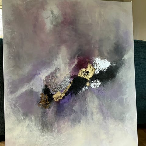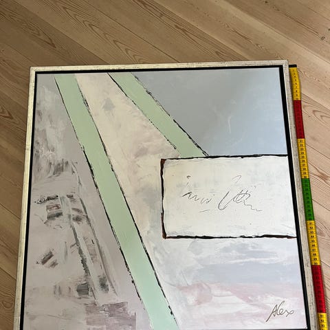 Meget dejligt maleri i rolige farver. Mål 90*90 cm.