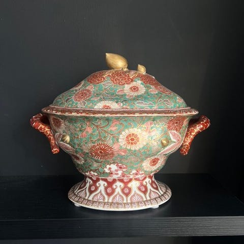 Chokin art has a long history in Japanese culture. These gilded plates are collected around the world. In the 12 century, Japanese chokin artists used chokin art to decorate armor, weapons and other military supplies of notable samurai. Today chokin art is commonly used for various different items such as plates, vases, compact mirrors, and other accessories and décor. Chokin designs can range from scenes of fierce dragons to gentle blossoms and landscapes.