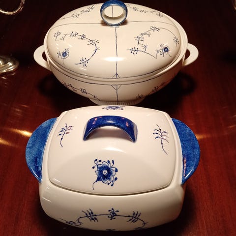 Den ene har et skår. Ellers fine, ikke revner eller slid.