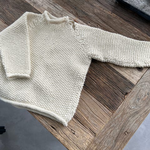 Ubrugt hjemmestrikket sweater, str. 110-116 (se mål)