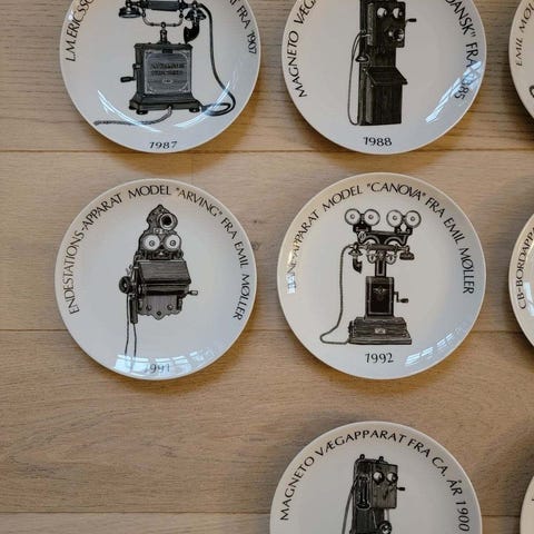 Platter, Danmarks første Telefonmuseum., Fin porcelænsplatte fra Danmarks første Telefonmuseum åbnet på Helrup Central 1981.