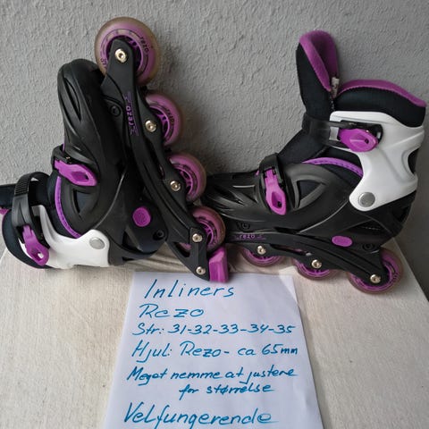 SOC inliners. Justerbar størrelse 35-38. Pæn stand, mindre og udelukkende kosmetiske brugsspor. Flere former for lukning gør, at det er nemt at justere og få skøjten til at sidde godt på foden. Nypris 650kr