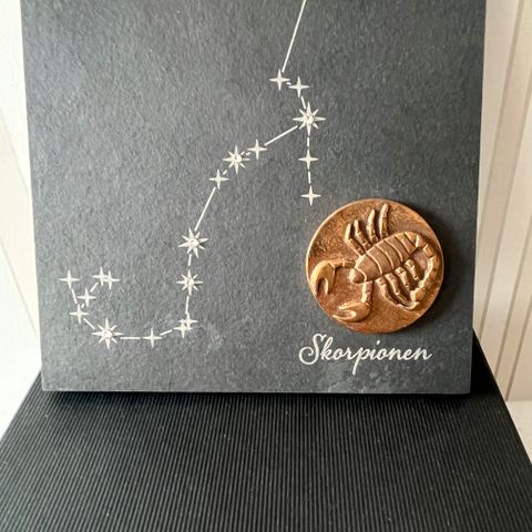Smuk skiferplade med stjernetegnet Tvillingerne, fra Butzon & Becker med små fine Swarovski krystaller og stjernetegnet i bronze.