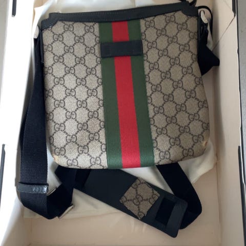 Flot rummelig skuldertaske fra Gucci. Tasken er udført i kraftig sort monogram præget canvas, med læder håndtag pg detaljer.