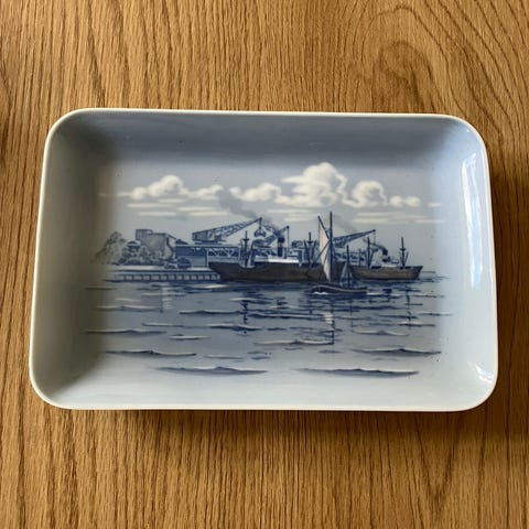 Fad, mærket med Nissen Danmark Azur i bunden (Bing og Grøndahl). Oplagt til lagkagefad eller til andre serveringer.