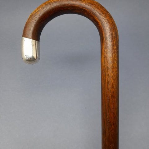 Særdeles flot antik - vintage pioner stok - vandrestok - vandrestav - Alpe stok med metal spids SAMT 22 forskellige skønne farverige vandremærker - stokkemærker fra Alpe lande mm