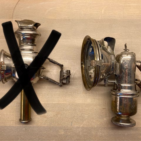 Karbid lygte, Messing, 120 år gl.