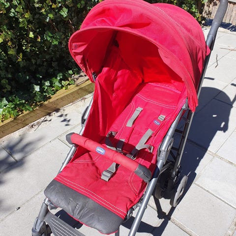 Denne klapvogn er med indvendig seler, ryg kan lægges ned, perfekt at tage med i bil eller på ferie