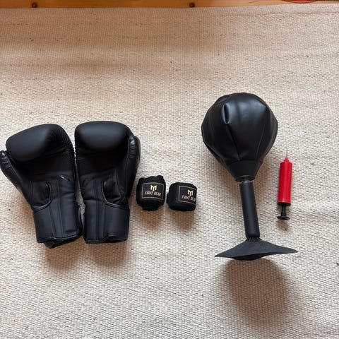 NY PRIS!! 4 kæmpe boksehandsker, samt 2 sumobryder hjelme sælges, da vi ikke får brugt det… Har været brugt et par gange udendørs i solskin og har ellers været opbevaret indenfor. Kom gerne med et bud👍