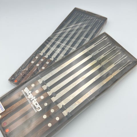 Rustfrit stål, Fondue emaljen er pæn og i orden overalt Spring pæn og i orden medfølgende gafler er fra stelton med træskaft