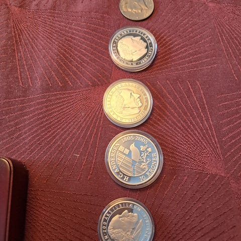 Sælger en spændende samling af både danske jubilæumsmønter og sjældne udenlandske mønter fra forskellige perioder og lande. Perfekt til både nye og erfarne samlere! Mønterne sælges som samling og enkeltvis. Hvis du skal have dem enkeltvis, så henvend dig til mig om pris.