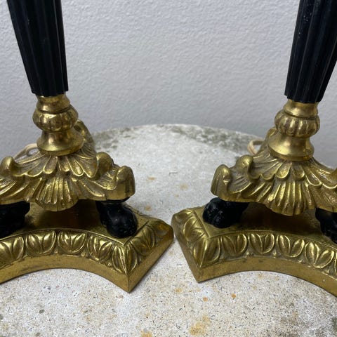 Vintage : Lille lampe løvefødder af messing og træ med fine detaljer.