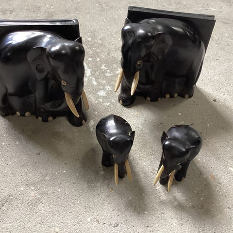 Elefanter, Ukendt, motiv: Elefanter, 2 stk hvide porcelæns elefanter, hvide med opsats. H: 67 cm. Kan eventuelt sælges enkeltvis