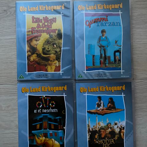 4 stk. Ole Lund Kirkegaard, DVD, familiefilm, Her er 4 af de klassiske Ole Lund Kirkegaard film fra 1980'erne - alle i fin stand.