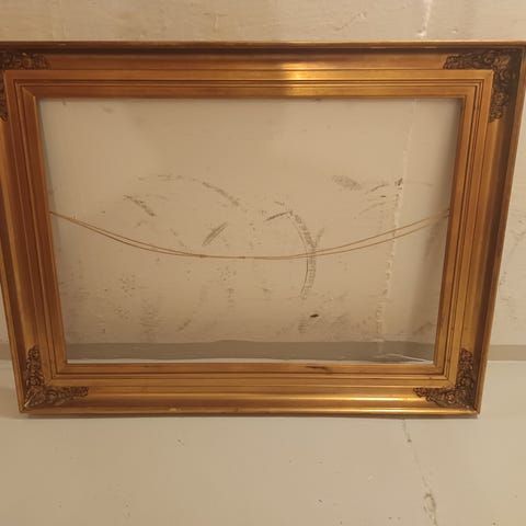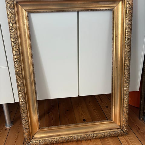 parti guld rammer i mylar plastik, format 56x71 cm, ca 5000 stk, foldes sammen rundt om en mdf plade som vi også har. sælges for højeste bud