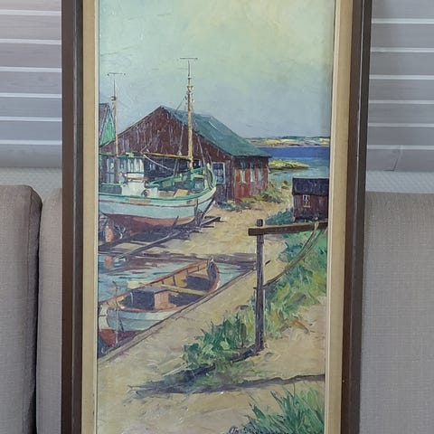 Oliemaleri, Tn Skovgaard, motiv: Landskab, stil: Naturalistisk, b: 75 h: 60, To fiskerbåde