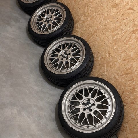 4 stk total seje fælge - 3 flotte conti dæk 90% mønster- et desværre punkteret men 4 ialt.
