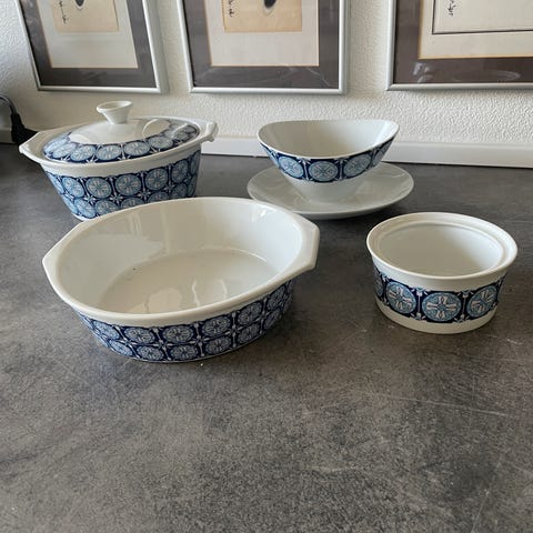 Fem kæmpe fade i rød farve De er næsten 1 meter
