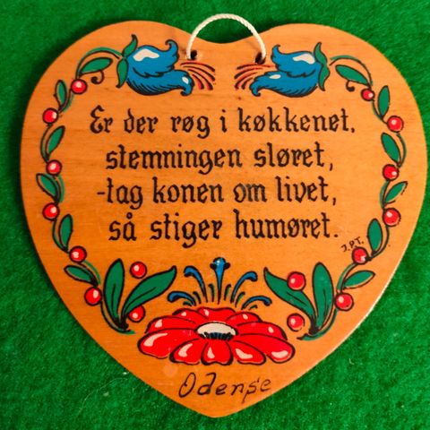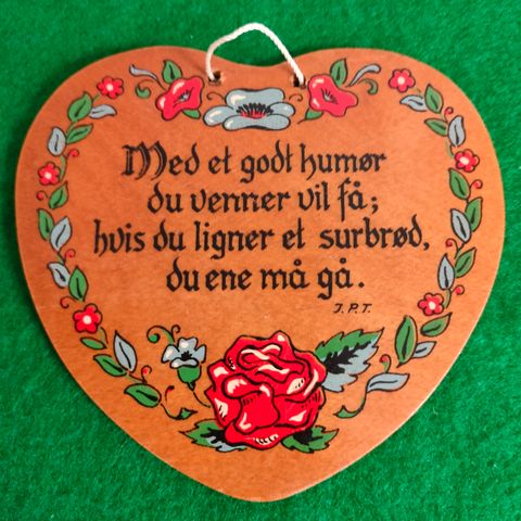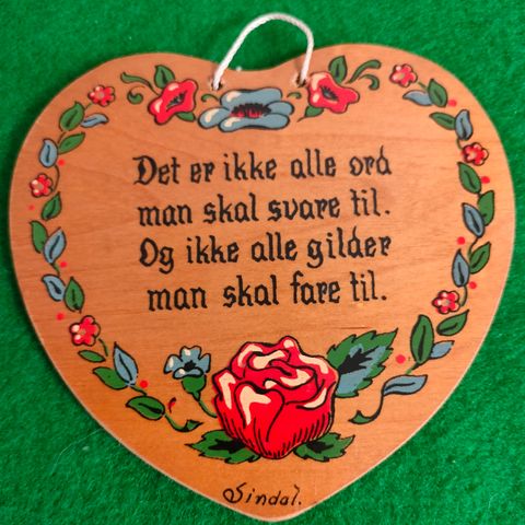Super skønt træ hjerte fra 50-60erne med bevingede ord: "Man angrer sjældent sin tavshed, men ofte sin hastige tale".