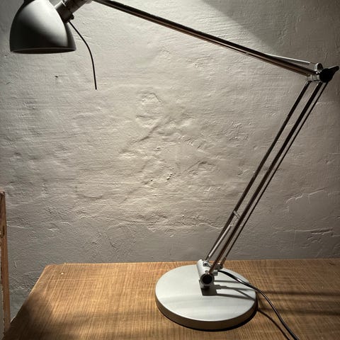 Arbejdslampe, Retro ikea gammel model bølget, Fed lampe. Skærmen sidder lidt skævt på foto fordi der ikke er pærer i. Skærm medfølger ikke